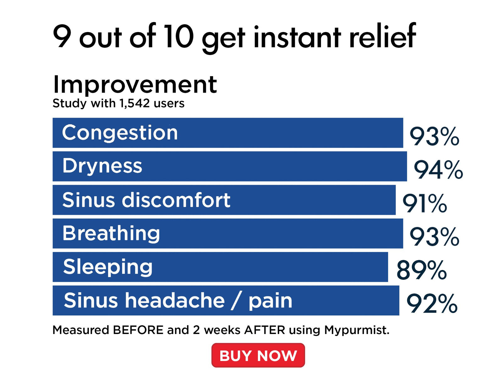 Only Mypurmist gently showers your nose, sinuses, mouth and throat with pure micro-mist for superb relief.
